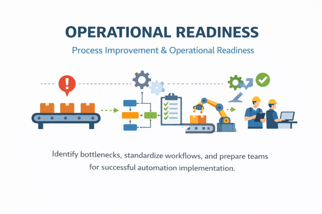We redesign workflows, improve layouts, and implement lean strategies to increase throughput, reduce bottlenecks, and enhance operational performance.
